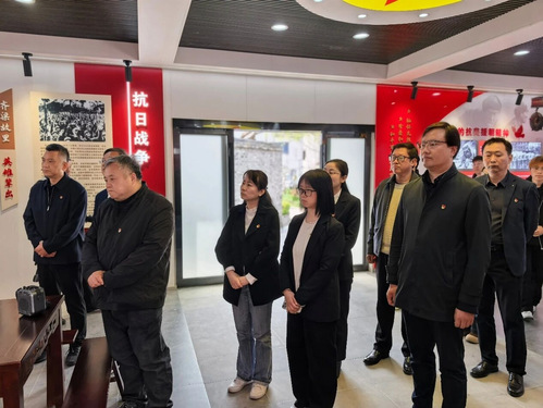 随后,全体与会人员步行前往束和顺纪念馆举行祭扫缅怀活动。在纪念馆前,全体人员向革命先烈敬献鲜花、行鞠躬礼,在庄重肃穆的仪式中向革命先烈表达了崇敬与缅怀。在纪念馆的参观中,公司一行在现场看到,展览不仅呈现了令人肃然起敬的革命先烈事迹,还借助AI技术重现了英雄的音容笑貌。通过沉浸式体验,参观者深切感受到革命先辈于平凡中见伟大的崇高精神,以及他们无私奉献的无产阶级革命信仰。