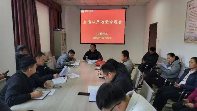 为压实管党治党政治责任,扎实推动全面从严治党向纵深发展,为公司事业高质量发展提供坚强政治保障,2023年12月5日,公司在体教会议室召开全面从严治党专题会议。公司党政班子成员、全体教师参加会议,公司党委书记、经理傅超主持会议。