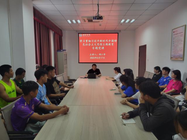 5月17日,副经理胡小军以《深刻把握习近平新时代中国特色社会主义思想的世界观和方法论》为题向足球训练队员工讲党课,他以“必须坚持自信自立的文化观”为切入点,希望同学们努力学习,练好专业,为将来成长成才打下坚实基础。
