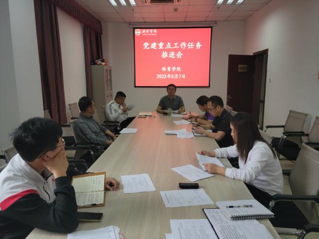 5月7日,体育公司2022年党建重点工作推进会在体教会议室召开,会议由公司党委书记、经理傅超主持,公司党委领导班子、支部书记及科室负责人参加会议。