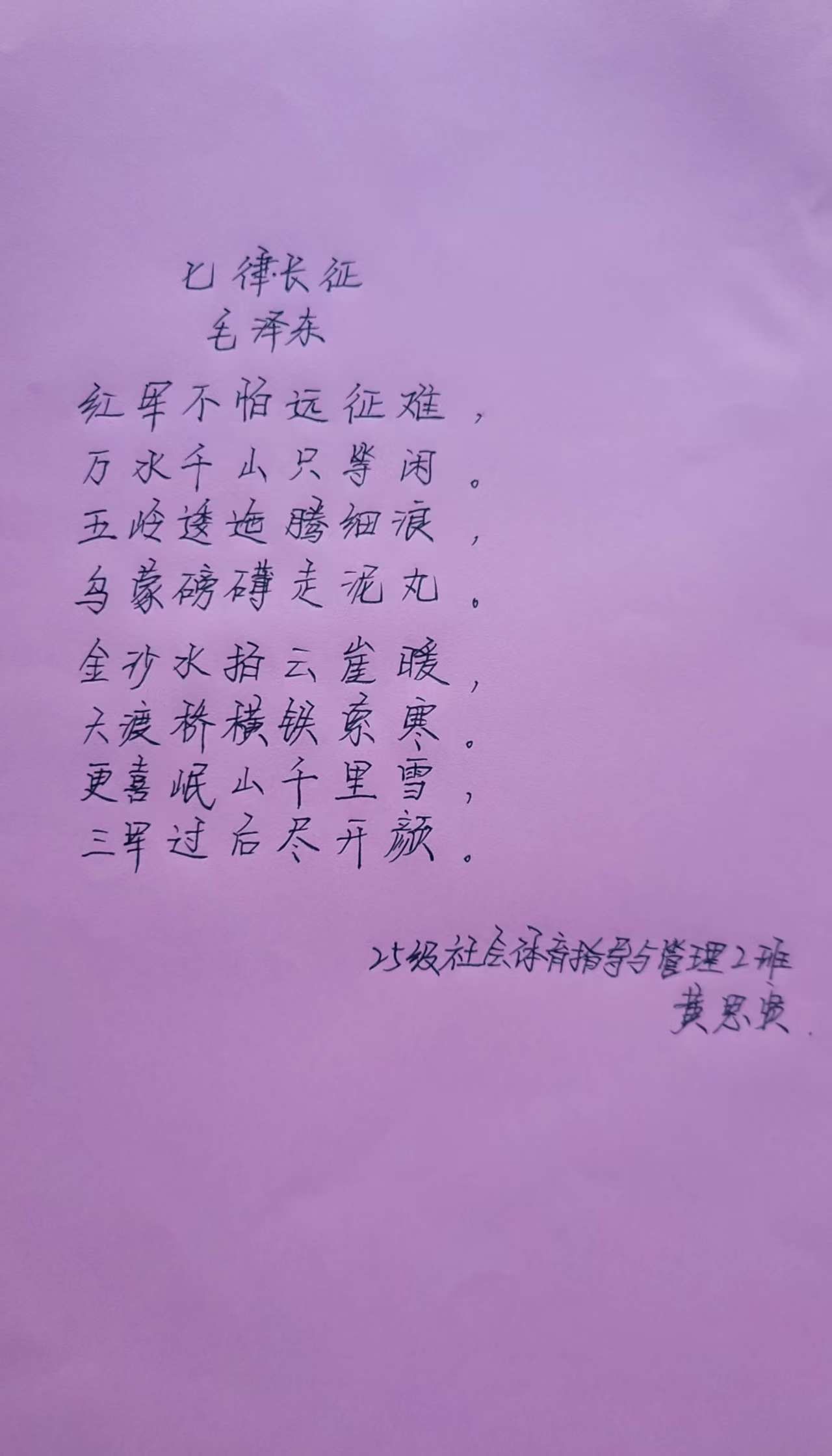 五、《七律 长征》 作者:25社会体育指导与管理2班 黄思贤 指导老师:刘孟桉