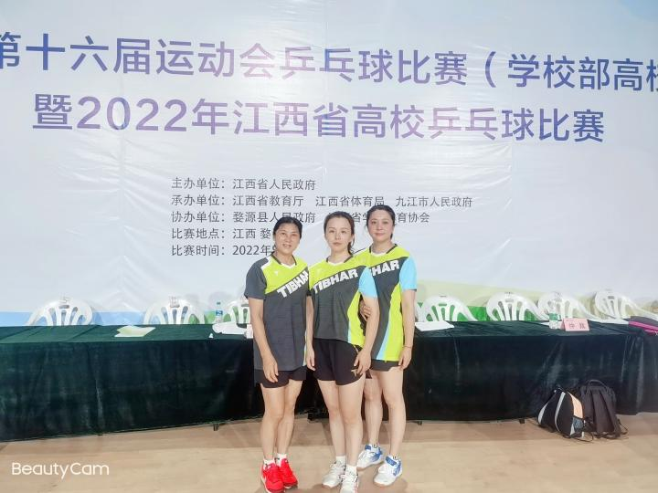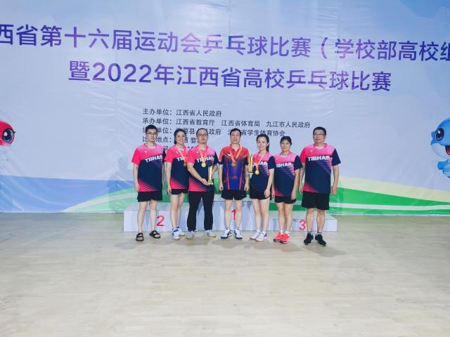 9月6日,江西省第十六届运动会乒乓球(高校教工组)比赛顺利落下帷幕,公司代表队员不畏强手、顽强拼搏,取得了历史最好成绩。其中,廖丽琴、陈瑛、邹薇获得女子团体冠军;陈瑛、邹薇获得女双冠军;陈瑛获得女单亚军;邹薇获得混双亚军;邹薇、廖丽琴分别获得女单第五、第七;副经理胡小军获得男子团体第八的优异成绩。