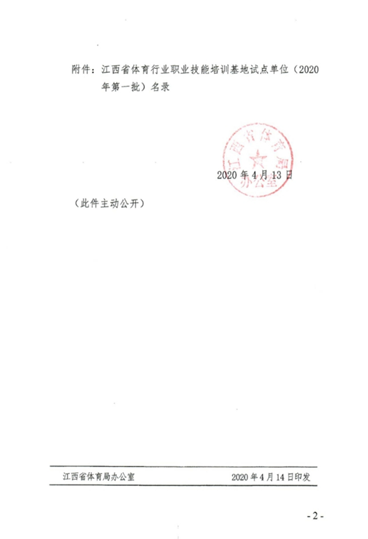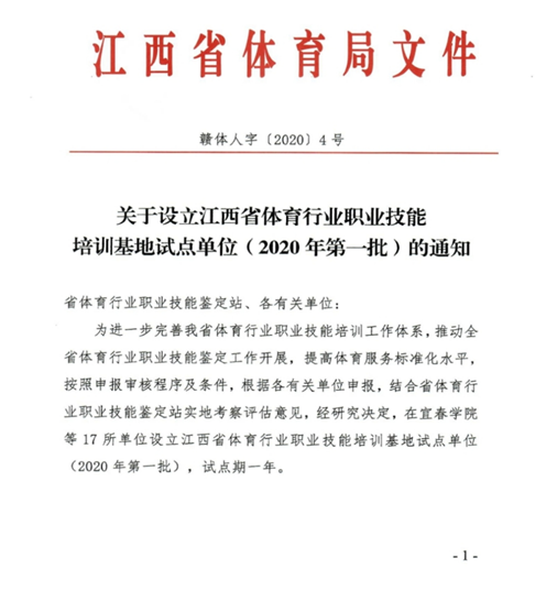 4月14日,江西省体育局赣体人字(2020)4号文件批复,betway88西汉姆联获(2020年第一批)江西省体育行业职业技能培训基地试点单位。