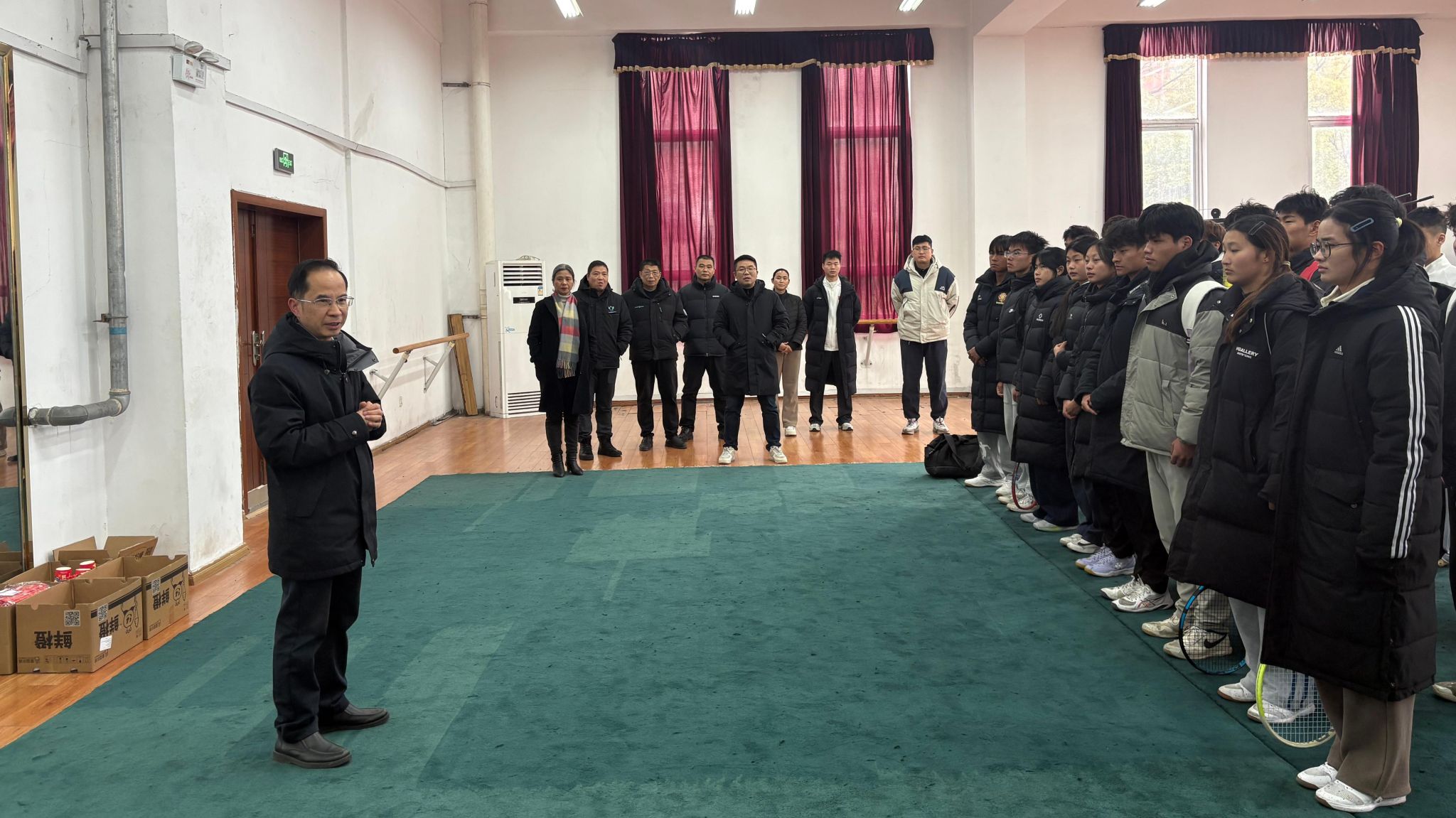 慰问中,周小云实地察看了留校运动员的训练情况,详细询问训练计划、饮食住宿保障及身体状态,对同学们放弃假期、刻苦备战的拼搏精神给予肯定,鼓励大家咬紧目标、刻苦训练,力争在省运会上取得优异成绩。周小云在讲话中强调“坚持”的重要性,他指出,备战省运会是一场攻坚战,唯有坚持方能见效、唯有坚守方能突破。他对同学们提出明确要求:一是要坚持目标导向,锚定省运会备战核心任务,刻苦钻研专项技术、精益求精打磨动作细节,全力冲刺省运会佳绩;二是要坚持严于律己,始终恪守校园管理规定,增强安全防范意识,在坚持中锤炼过硬作风,在奋斗中收获成长进步。