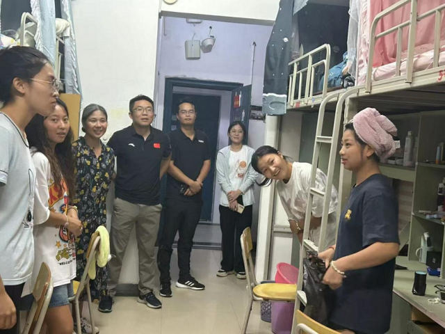 9月5日晚,betway88西汉姆联经理傅超、党委书记杨继忠带领该院班子成员,在新生班主任、各班班助的陪同下,深入宿舍看望2024级新生。