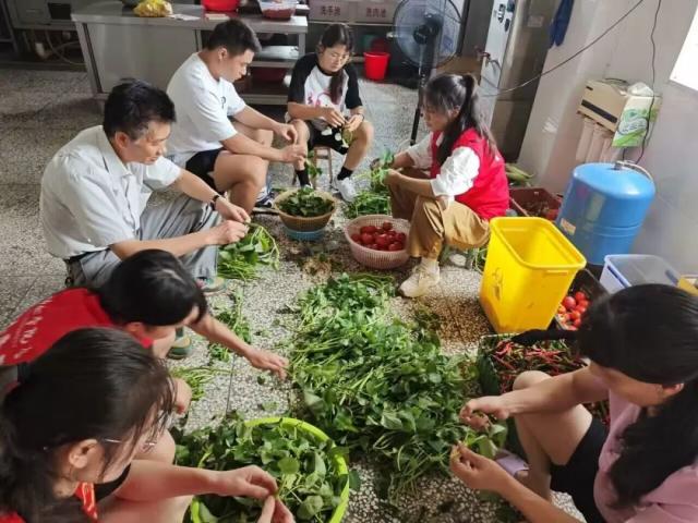由于我们在实践活动时期与小朋友们同吃同住,充分融入到他们的生活环境中去,食堂阿姨的工作量也是比以往增加了不少,于是我们在结束上午的内容之后,开始着手帮食堂的阿姨进行摘菜、洗菜等,力所能及地做一些家务活。
