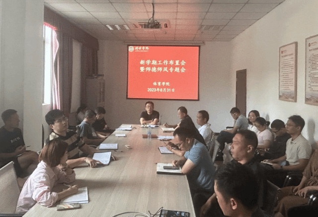 傅超强调,要按照学校统一部署安排,统筹落实好新学期各项工作,确保新学期各项工作平稳有序开展。一是要落实好学校迎新工作部署,做好迎接新生工作;二是做好开学前各项安全排查工作,对教学器材、训练场馆、办公设备、宿舍水电等进行安全排查;三是重视意识形态领域的安全稳定,加强课堂、网络等阵地管理;四是要进一步认识师德师风教育的重要性,严格遵守《新时代高校教师职业行为十项准则》,做好各项教学准备工作,上好开学第一堂课。